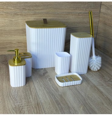 Apportez une touche moderne et naturelle à votre salle de bain avec ce set d’accessoires 6 en 1 , doté d’un design épuré avec un couvercle en bois élégant . Il s’intègre parfaitement à tous les styles d’intérieur.