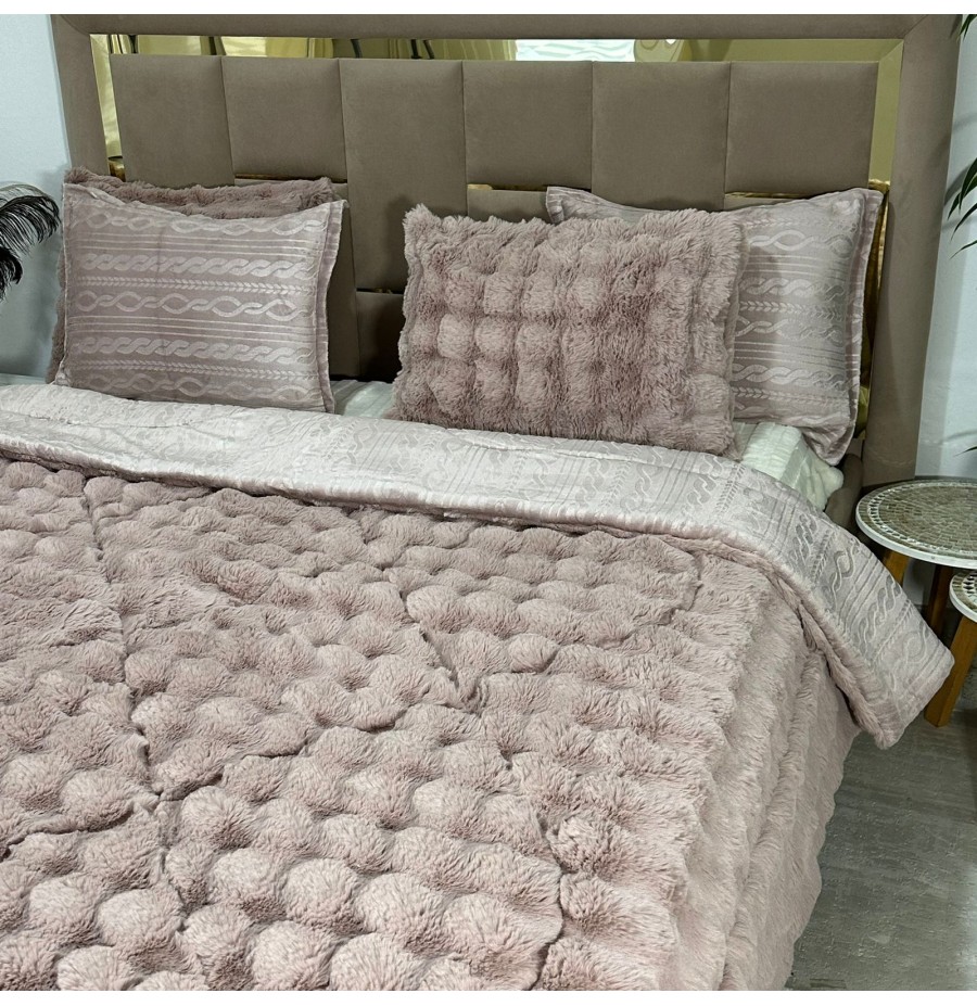 Ensemble 5 pièces complet Tissu Fourrure de Lapin ultra doux & chaleureux , Verso en Flanelle gravée très douce.