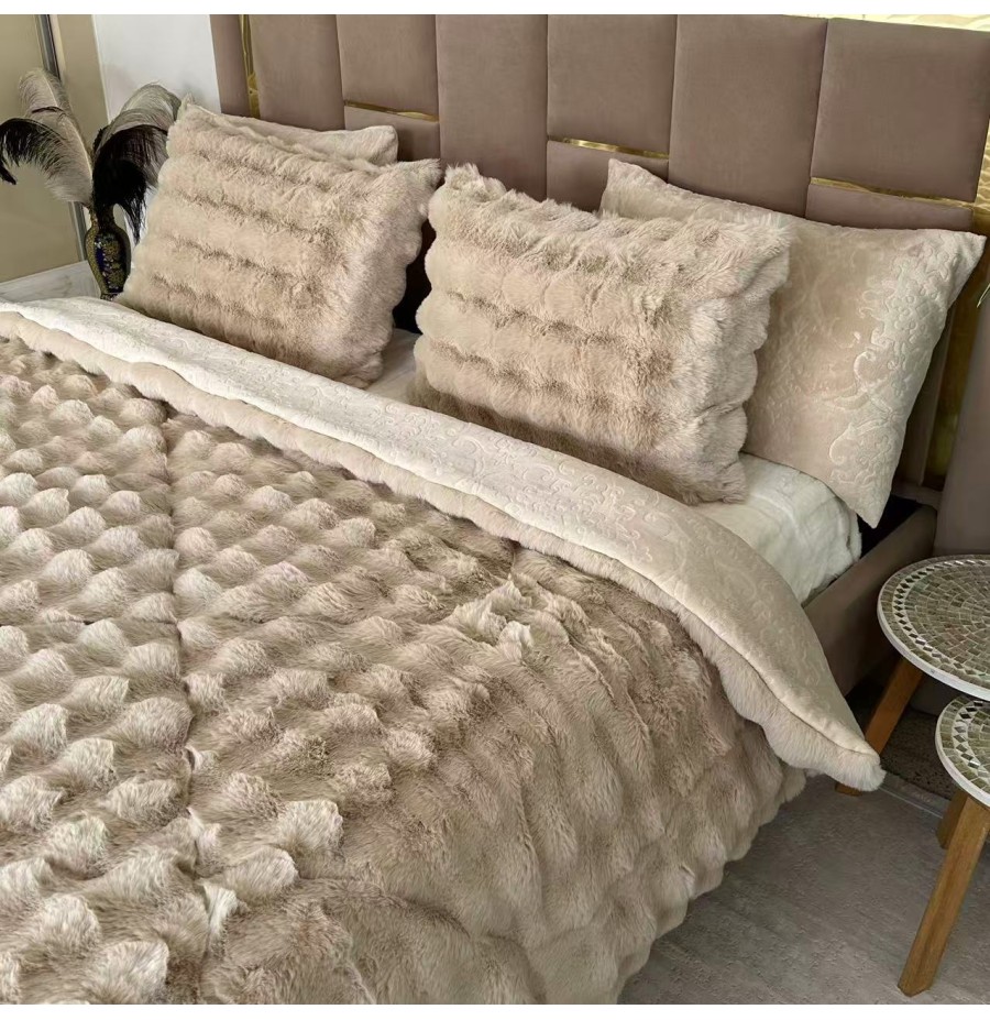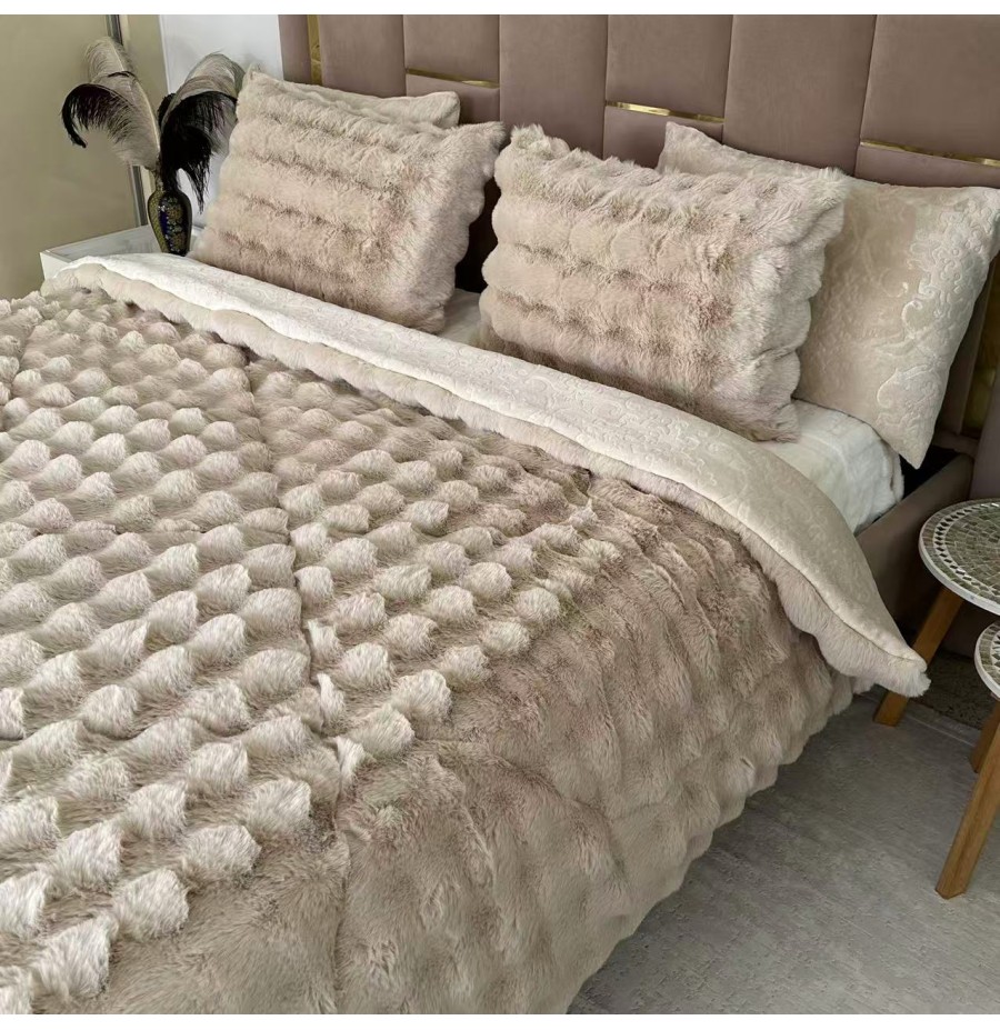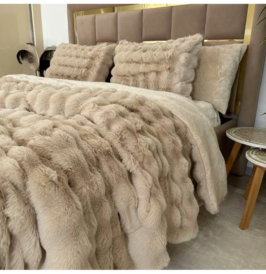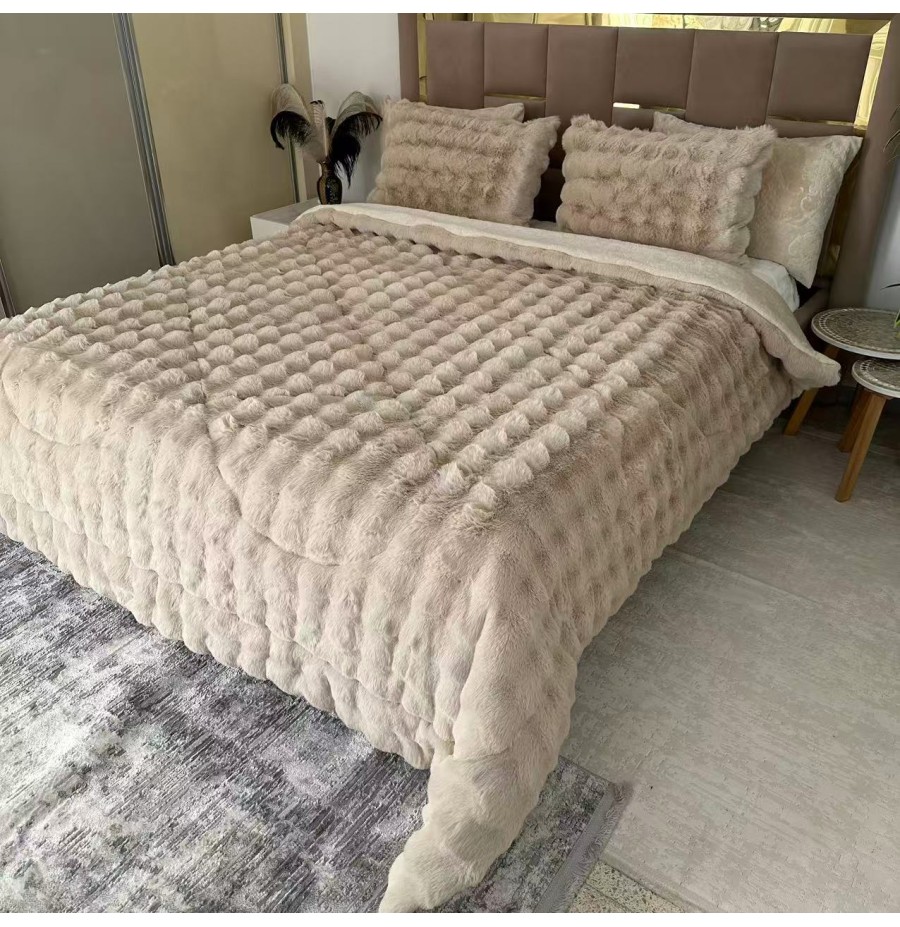 - Ensemble 5 pièces complet Tissu Fourrure de Lapin ultra doux & chaleureux , Verso en Flanelle gravée très douce.