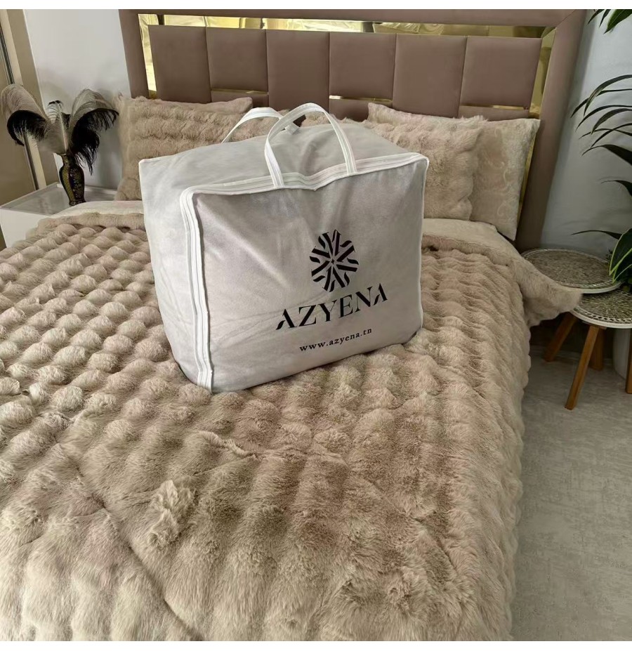 Découvrez l’élégance et le confort absolu avec notre couette Luxe en fourrure de lapin, signée et fabriquée par Azyena.