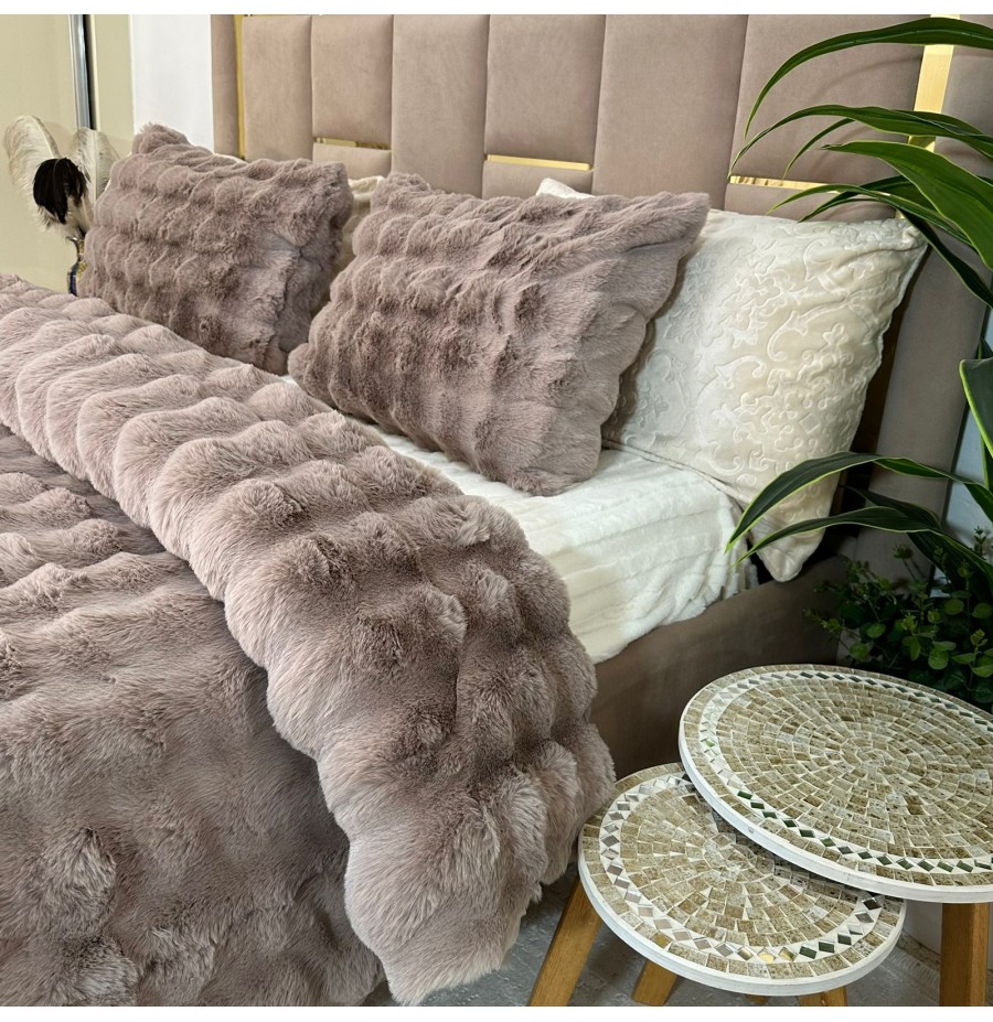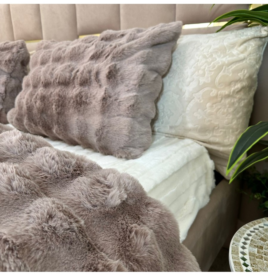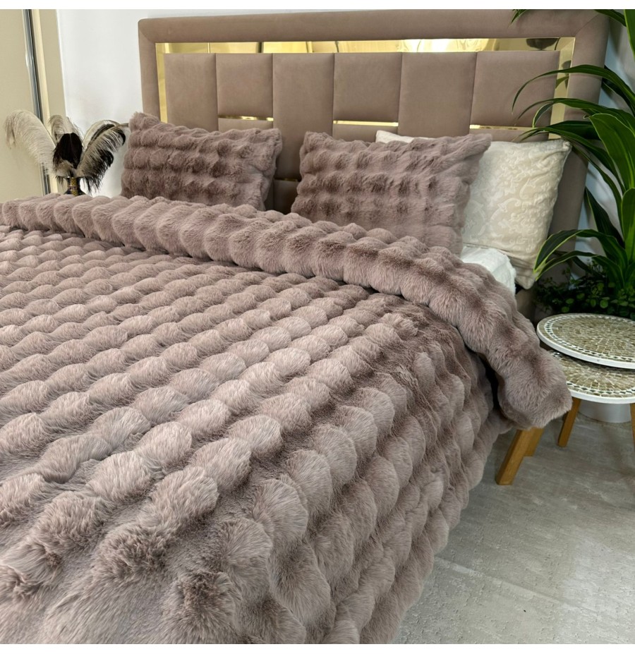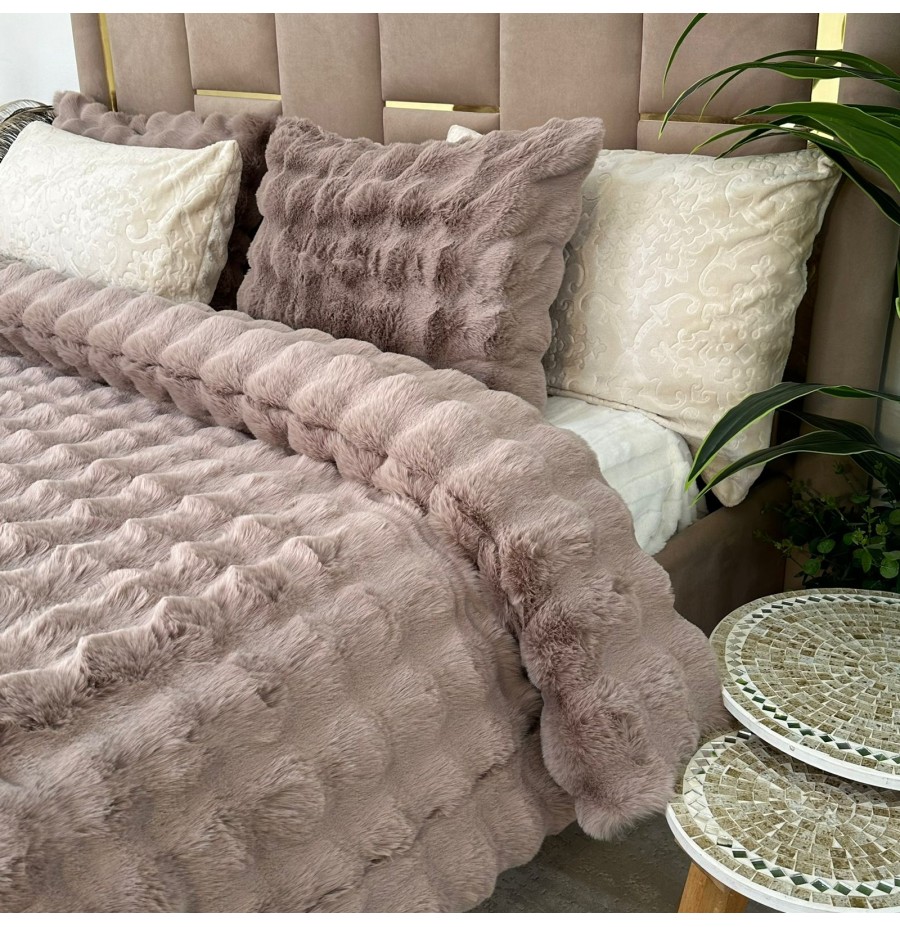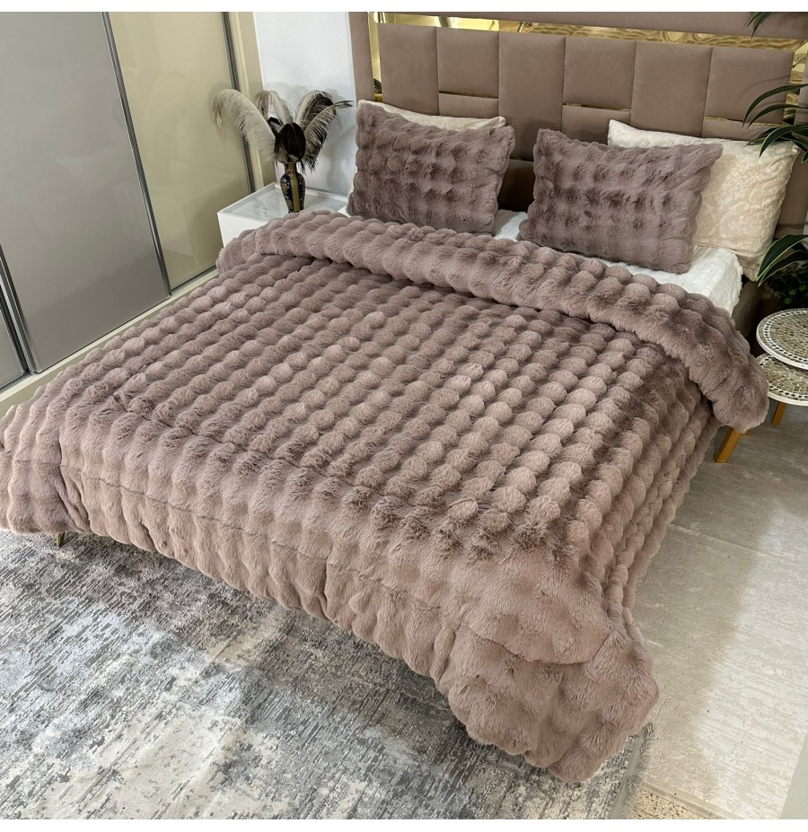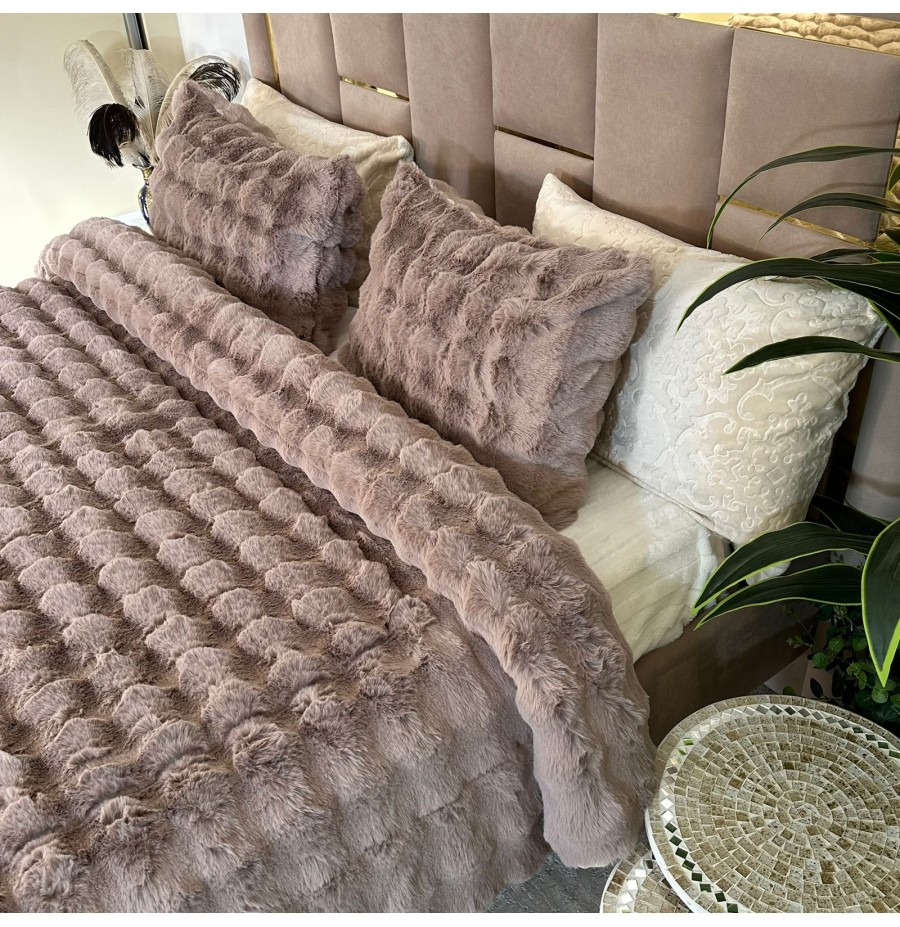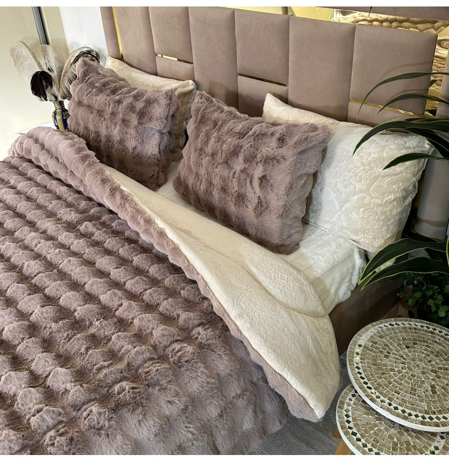 - Ensemble 5 pièces complet Tissu Fourrure de Lapin ultra doux & chaleureux , Verso en Flanelle gravée très douce.