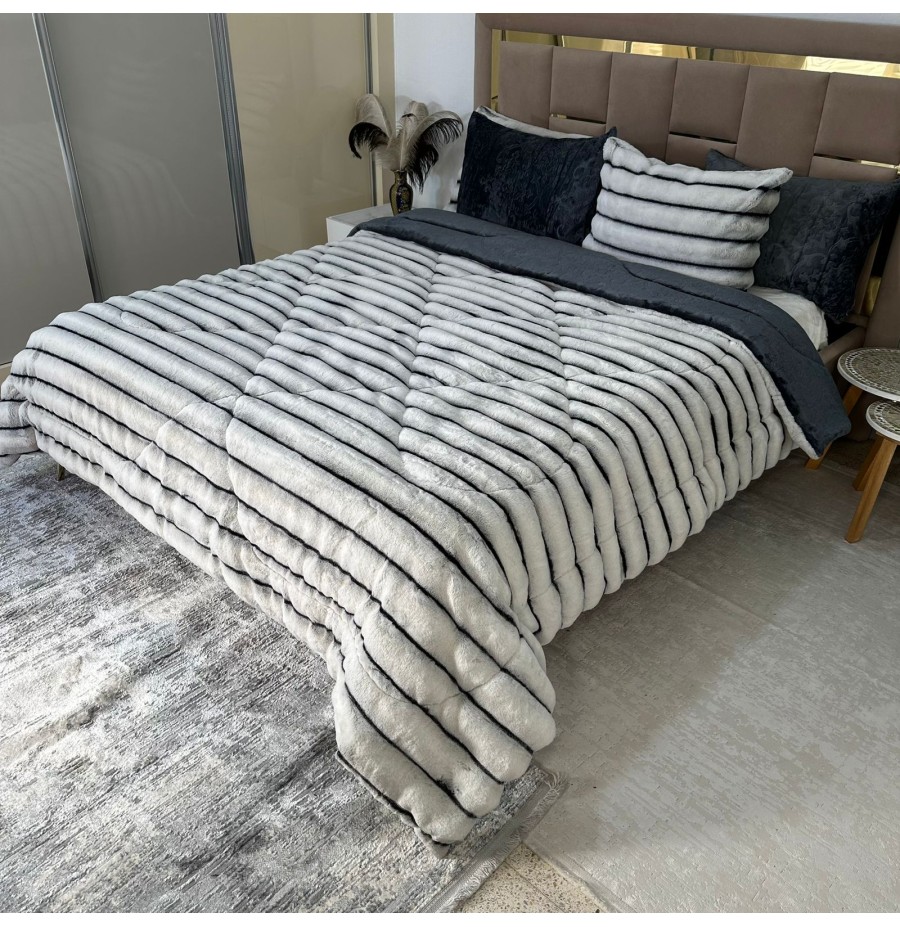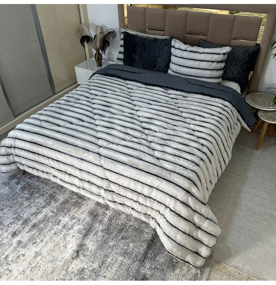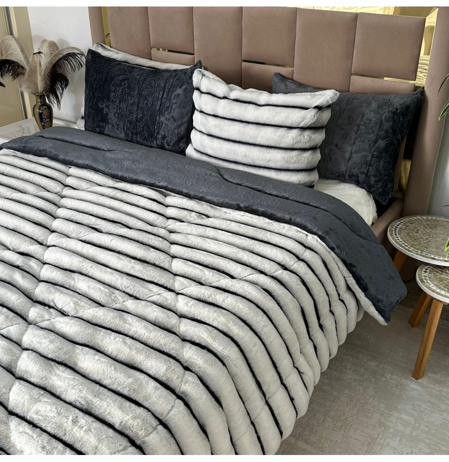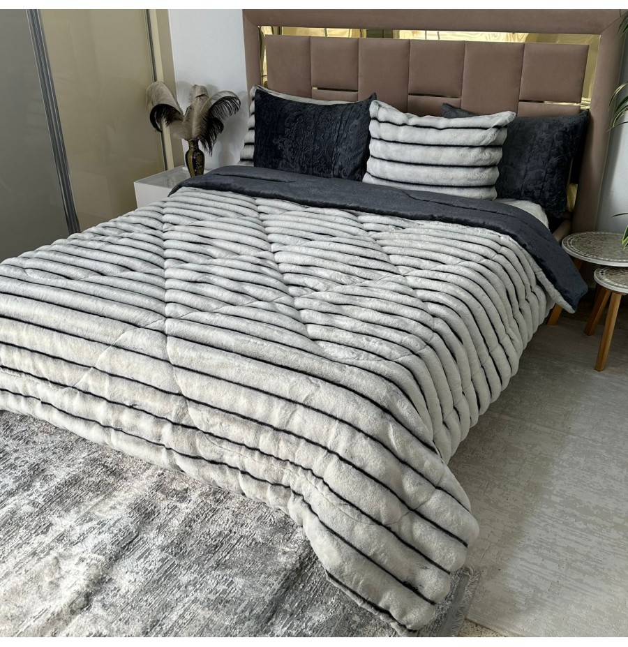 - Ensemble 5 pièces complet Tissu Fourrure de Lapin ultra doux & chaleureux , Verso en Flanelle gravée très douce.