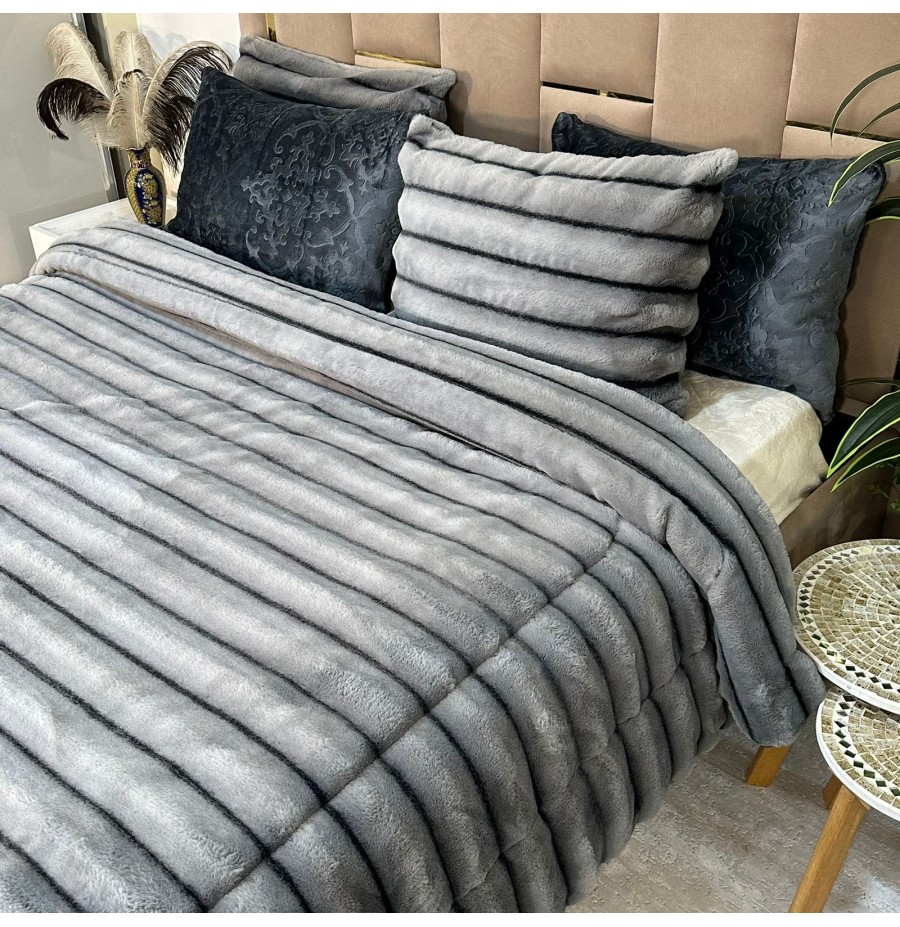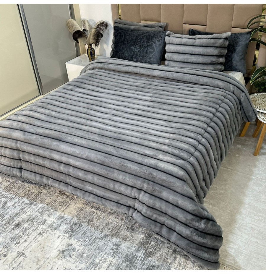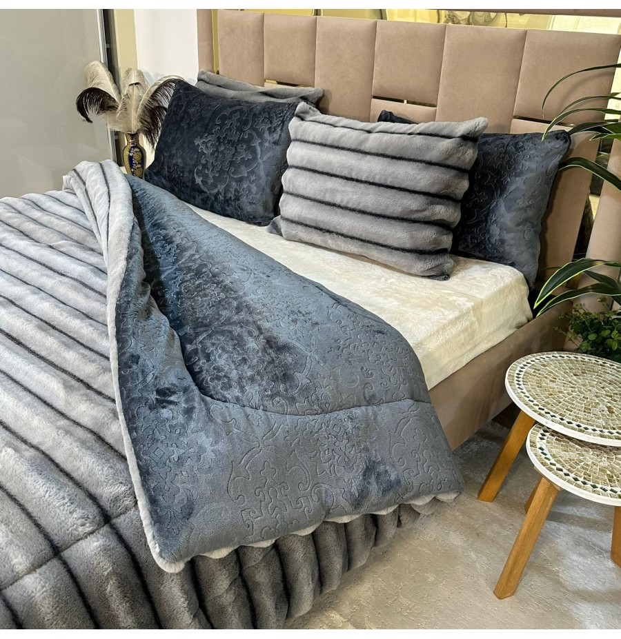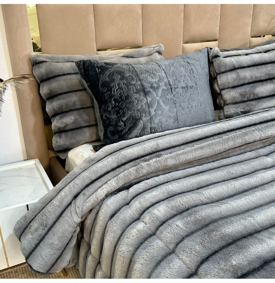 • Ensemble 5 pièces complet Tissu Fourrure de Lapin  ultra doux & chaleureux ,  Verso en Flanelle gravée très douce.