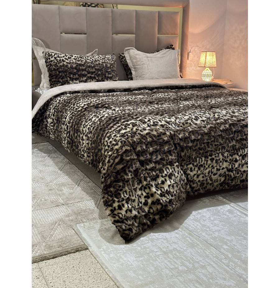 Ensemble Couette 5 Pièces – Design Léopard en Polaire Ultra Douce & Velours Gravé