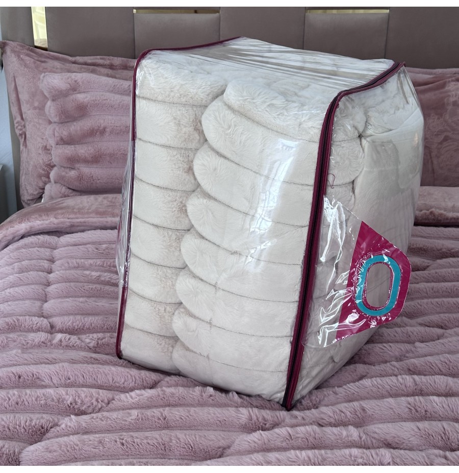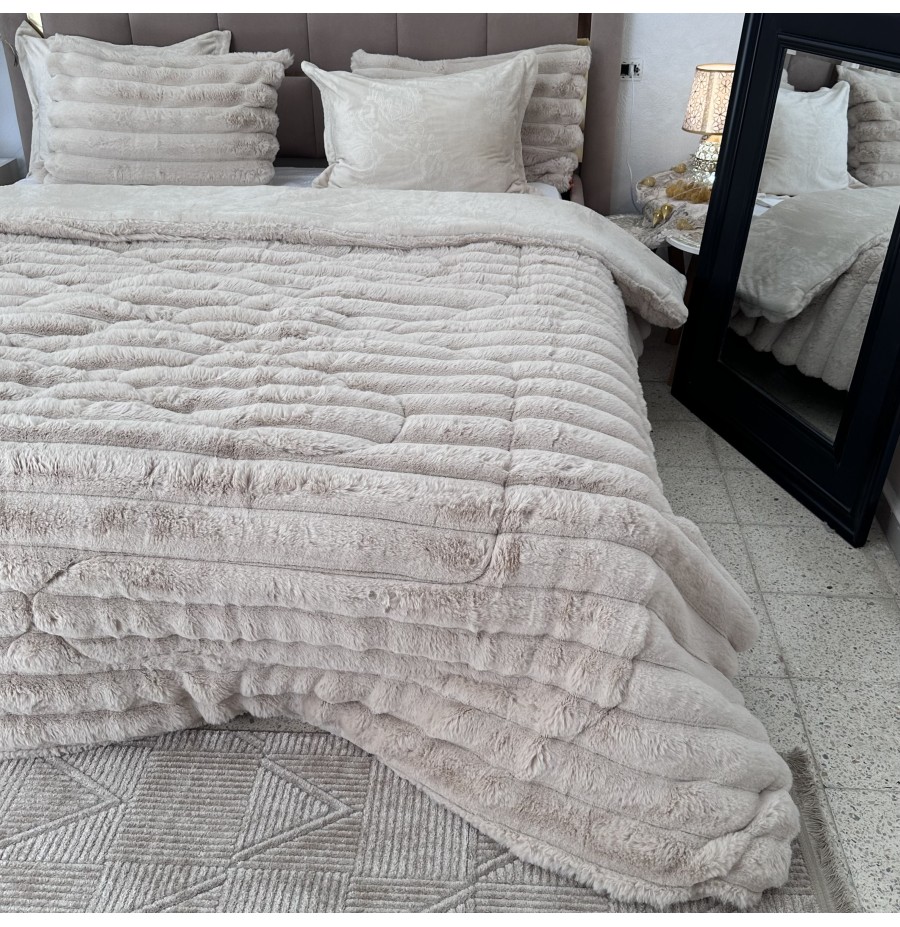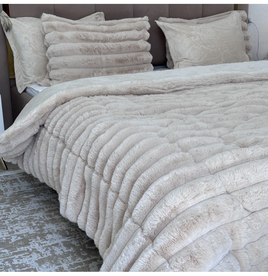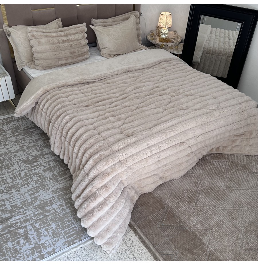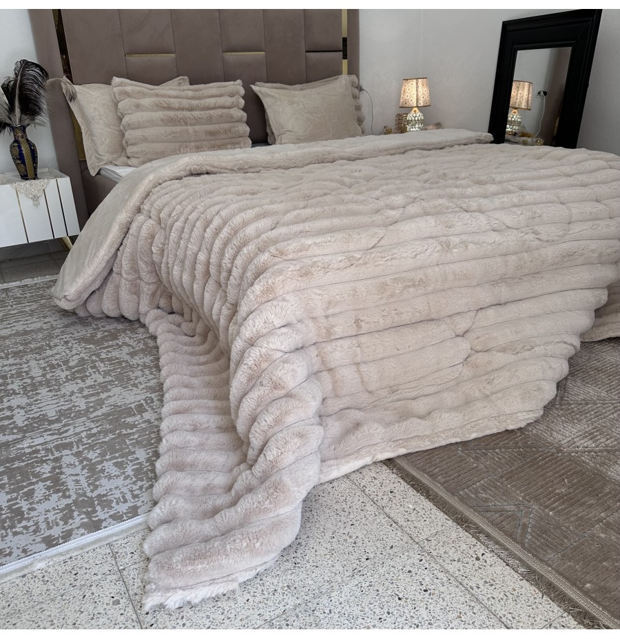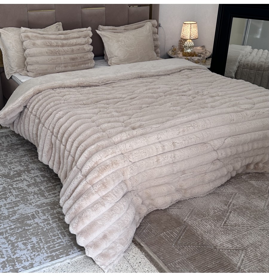 LUX -Ensemble Couette Fluffy Lotus en Fourrure Lapin - 5 Pièces