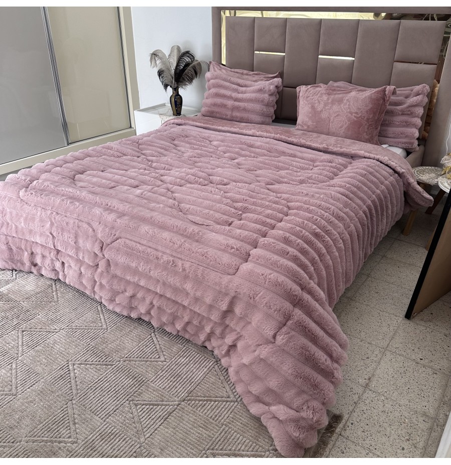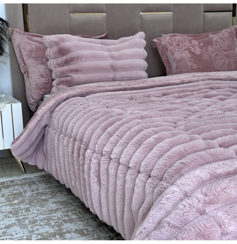LUX -Ensemble Couette Fluffy Lotus en Fourrure Lapin - 5 Pièces