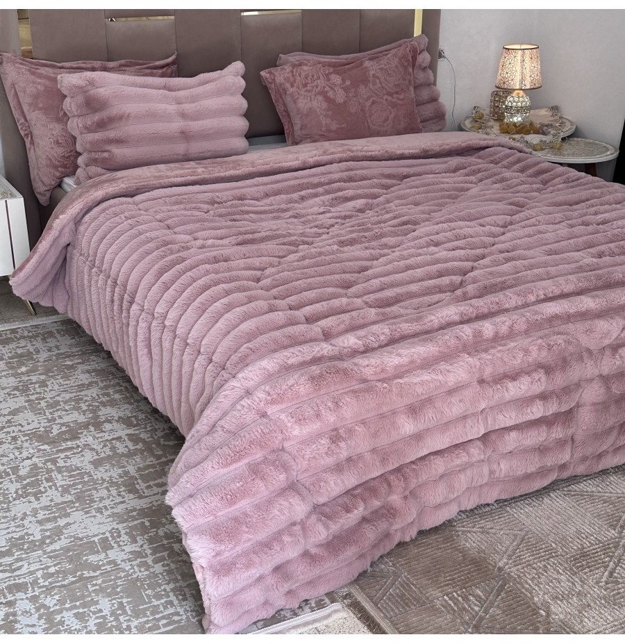 - Plongez dans le luxe et le confort avec l'ensemble couette Lotus Karen en fourrure de lapin. Cet ensemble de Couette 5 pièces, comprenant une couette 235 * 255 cm et 4 taies d'oreiller 50*70 cm , allie douceur et chaleur avec son design en peluche . Parfait pour ajouter une touche cosy et élégante à votre chambre.