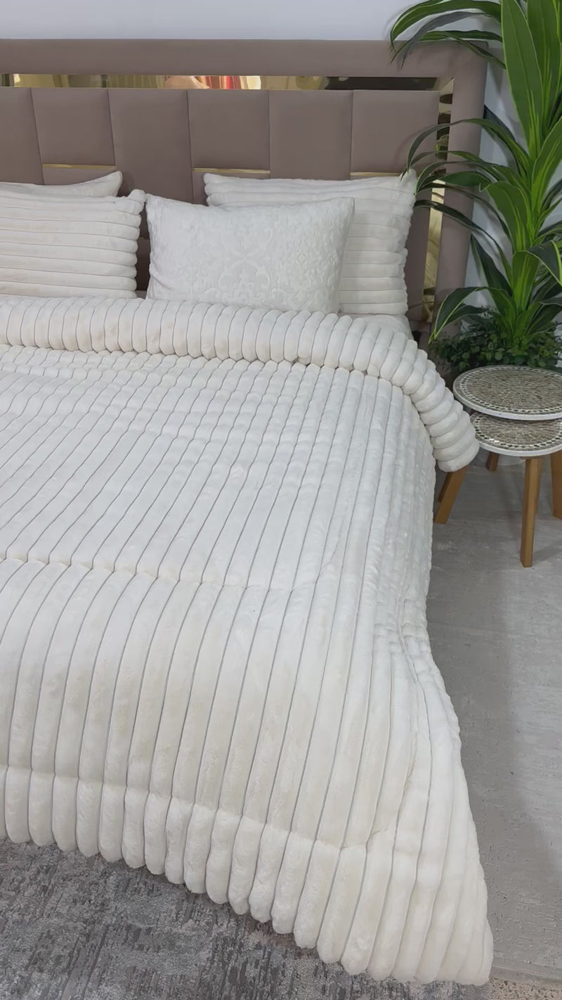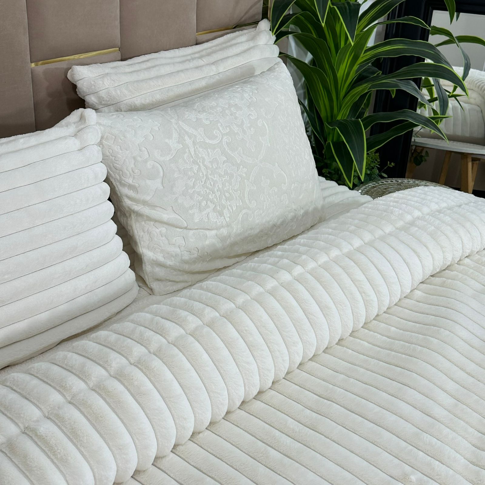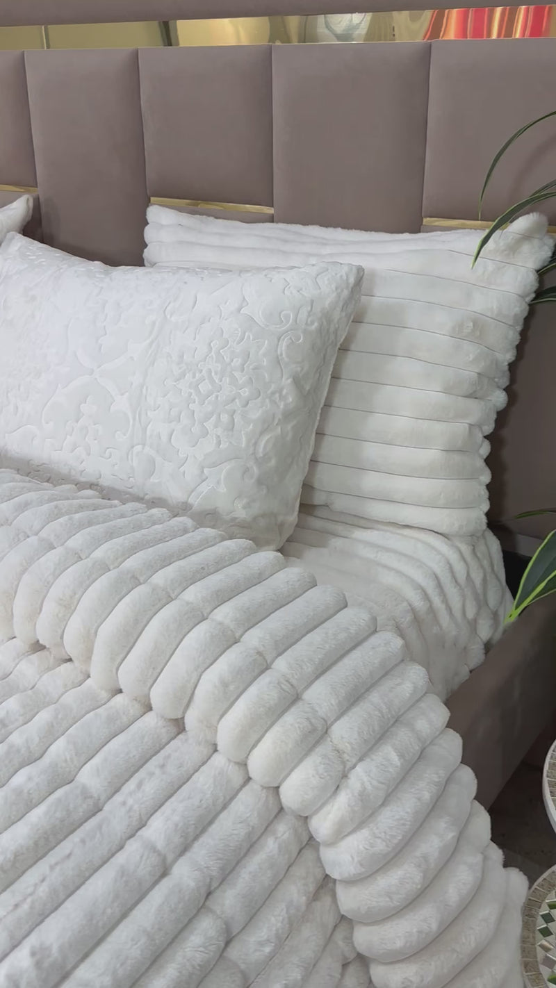 Ensemble 5 pièces complet Tissu Fourrure de Lapin ultra doux & chaleureux , Verso en Flanelle gravée très douce.