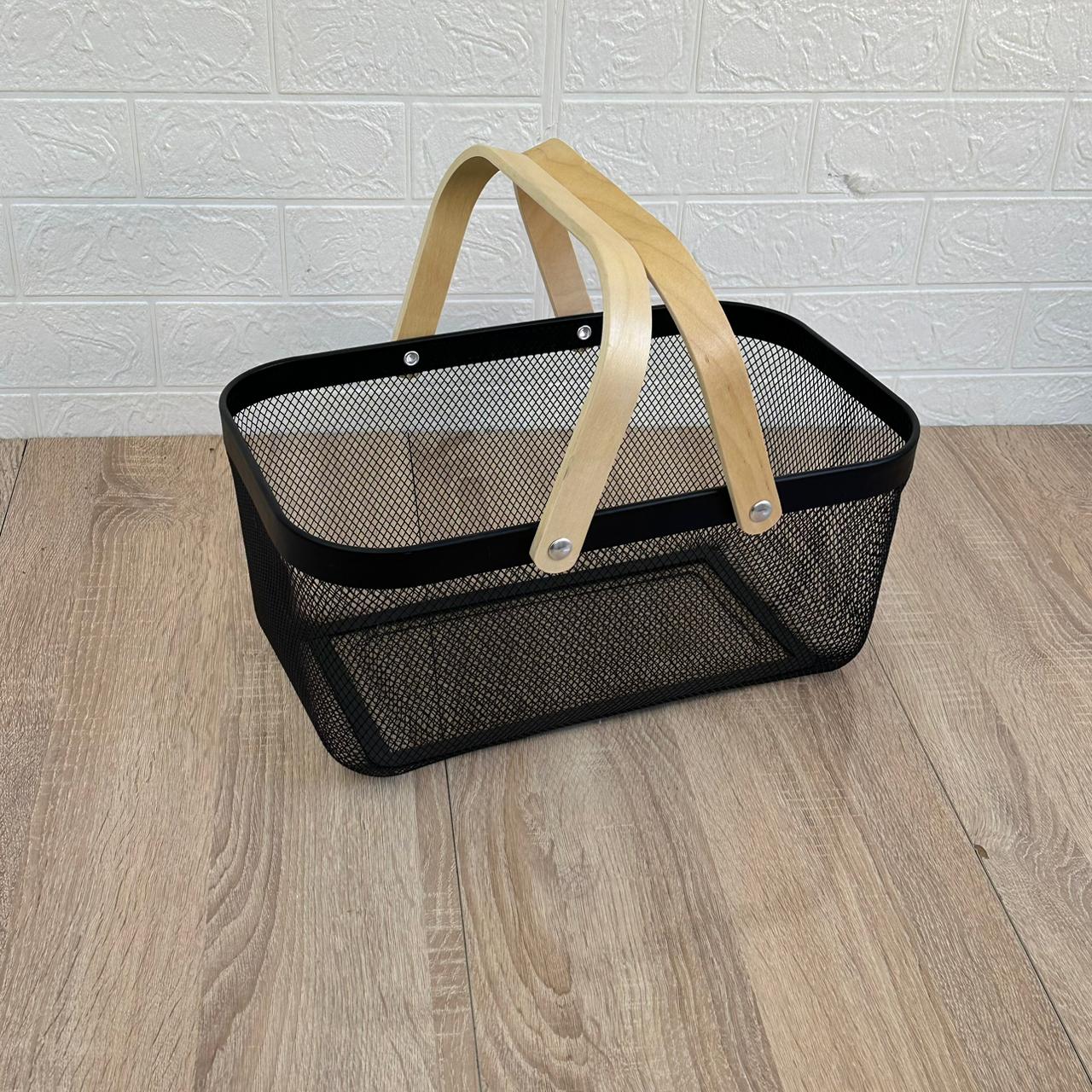 Lot de 3 paniers en acier à maille métallique avec poignée – Noir