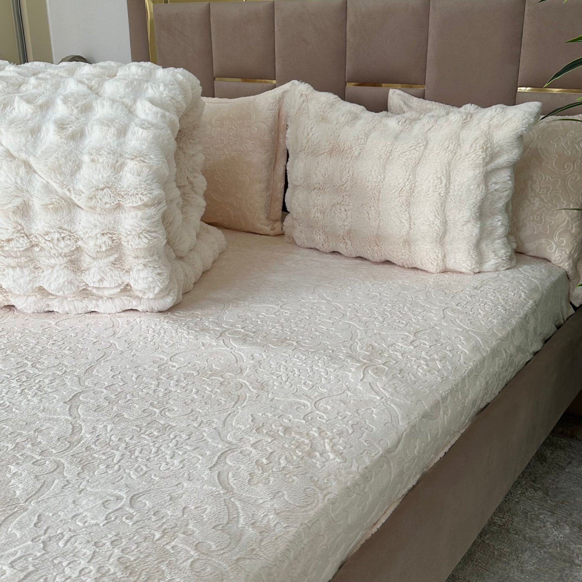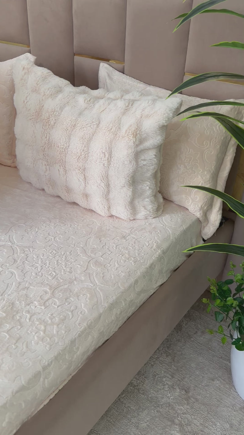 Ensemble 5 pièces complet Tissu Fourrure de Lapin ultra doux & chaleureux , Verso en Flanelle gravée très douce.